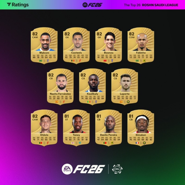 FC26沙特联球员评分:C罗、本泽马、坎特、伊尼戈85分最高
